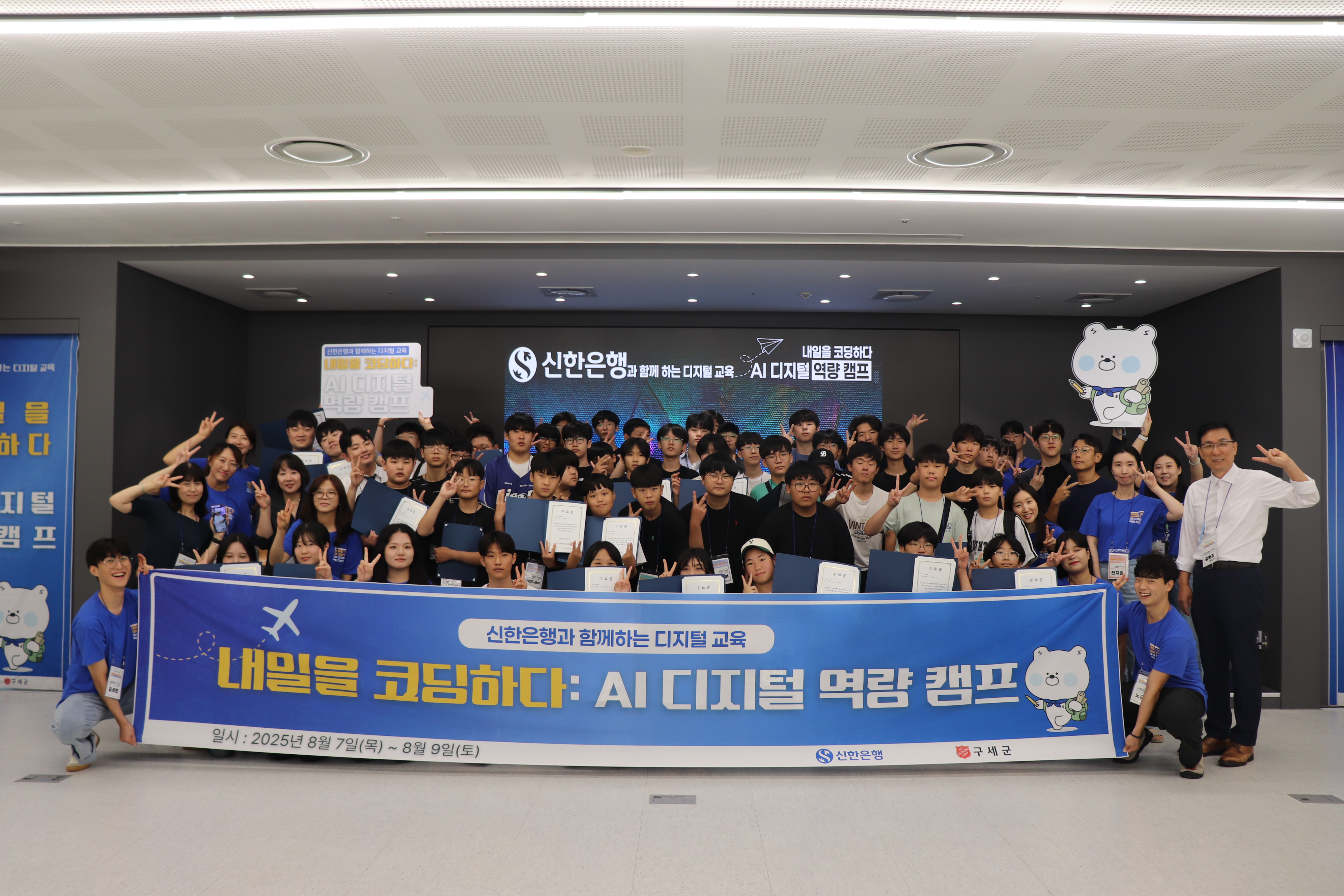 지난 8월 7일부터 9일까지, 인천에서 열린 ‘내일을 코딩하다 : AI 디지털 역량 캠프’는 신한은행이 후원하고, 구세군이 주최, 망고스팀스가 운영을 맡아 성황리에 마무리되었습니다.