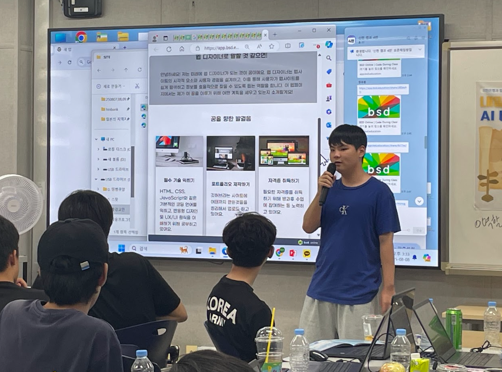 이번 캠프에서 학생들의 몰입도가 가장 높았던 활동은 바로 BSD 플랫폼을 활용한 ‘나의 진로 웹페이지' 제작 수업이었습니다☺️.